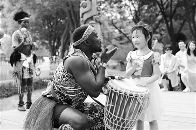 5月19日是中国旅游日,为欢度第八个“旅游日”,世界公园举办了多台富有异域风情的演艺节目。其中,在世界公园非洲区上演的非洲鼓舞成为一大亮点,与来自乌干达土著艺人一同体验原汁原味的非洲羊皮鼓为游客带来了惊喜。