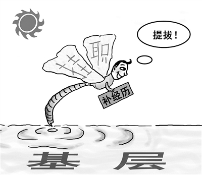 有一名机关干部申请下基层挂职,很多人以为他是想到一线锻炼真才实干,不料仅半年后他三番四次找领导要求调回机关。原来,他的履历中只有一年半的基层工作经历,而当地规定,提拔副处级领导干部,基层工作经历必须满两年。人们恍然大悟,他主动请缨挂职锻炼只是为了“补经历”,为升迁设计路线。(5月20日《中国纪检监察杂志》)□赵顺清