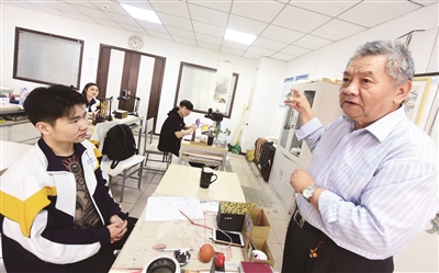 在位于天桥附近的北京轻工技师学院内,75岁的刘守本戴着一副老花镜,正站在讲台上给学生们上绘画课。三年前,这里正式系统开设了内画班,第一批招收了十几名学生,特聘刘守本为专业课老师。如此高龄走上讲台,刘守本之所以这么拼,就是为了培养新一代内画传承人。