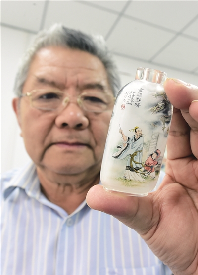 北京是中国明清两代皇都,内画鼻烟壶就是清代中后期京城文化的一个重要组成部分。如今,虽然内画分京、冀、鲁、粤四大派,但各派的起源均始于北京。刘守本总结称,“京派特别讲究用料,多用水晶、茶晶、发晶制作鼻烟壶,内画则以描绘历史故事、文学作品以及民间传说里的人物为主。”