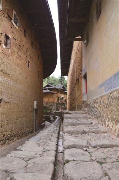 客家先祖晓行夜宿、步履匆匆来到此地,带着满面风尘,开始构筑起生命的栖息地——客家土楼,将尘嚣隔断在楼外,把身心安定下来,客家文化是客家土楼的灵魂,它谱写了一部客家人饱含血泪、艰卓奋斗的迁徙史。我手指触摸到坚固的黄褐色墙体,仿佛抚摸到了岁月坚硬的骨骼,站在圆土楼中央,仰望顶上那圆型的天空,内心莫名充溢着圆满祥和,时光,似乎在这一刹那间凝固了,回溯到历史的某一个节点上,有多少座土楼,就有多少个传奇故事……外面的世界日新月异,而土楼里的人们却依旧过着与世隔绝、我行我素的桃源生活。