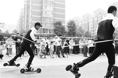 上午8点半,体育文化节启动。启动仪式上,2006年都灵冬奥会双人花样滑冰比赛银牌获得者张丹和参会领导及其他嘉宾共同进行了火炬传递,表达了群众期盼2022年北京冬奥会召开的热切心情。武术、舞狮等非物质文化遗产项目也纷纷登台表演,展现了前门地区的传统文化底蕴。前门小学的孩子们带来了轮滑表演,冰蹴球、定点投篮、踢毽子、慢骑单车等融汇传统与现代的项目现场纷纷开赛,标志着前门“体育时间”的到来。