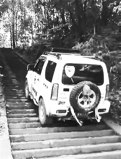 两名男子竟然驾驶越野车到古寺台阶进行“爬梯挑战”,导致石梯出现了明显破损,这不是在“爬梯挑战”,而是在挑战法律!