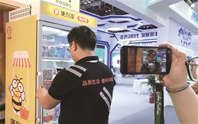 在本届京交会上,无人智能商业设备依然是“明星”。在京交会电子商务主题展区,便利蜂展位的智能货柜吸引了多人排队竞相体验。消费者使用手机微信小程序或APP扫描二维码,只听“咔”一声,“蜂小柜”就自动解锁,体验者打开货柜门,取出饮料或零食,关上门,手机就自动生成了订单结算。“太方便了,要是办公室有这么一台设备,加班就不愁饿肚子了。”一名参展者饶有兴趣地拿起手机感受。据悉,这种智能货柜现在已经在本市部分办公区、行政服务大厅等场合使用。