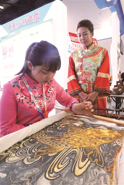 各地的非遗项目也是热门。陕西的巧手泥塑惟妙惟肖、黑龙江的满族刺绣精美异常、陕西的花馍让人惊叹制作者的心灵手巧和艺术想象力。