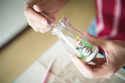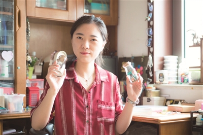 说做就做,贺媛买来玻璃瓶后迫不及待的开始“试验”,但很快她就尝到了失败的滋味。“主要是尺寸考虑不周到,玻璃瓶的瓶口很小,我捏的粘土有点‘肥’,放进去的时候特费劲儿。”虽然小心再小心的操作,但是作品还是没有顺利入瓶。