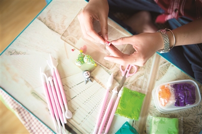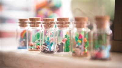 “步骤不难,但是做好不容易。要做到造型形似,没有其他捷径只能多练。”第一件作品的制作过程还算顺利,这也让贺媛更加喜欢上这个兴趣爱好。经过一段时间,她又产生了新想法。“我想把粘土捏出来的作品放进玻璃瓶中,这样不仅容易保存,而且可以让外观更具欣赏性。”
