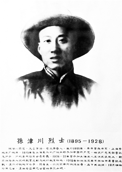 孙津川就是这“漫天星光”闪耀革命道路中的一位烈士。1895年,孙津川出生于安徽省寿县一个工人家庭。14岁起先后到南京、上海做工。1924年秋,孙津川在上海与中共党员彭干臣相识,并在其影响下走上革命道路。
