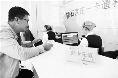 6月4日,一卡通行全国的“京津冀互通卡”面向石家庄市民正式发售。该卡不仅可以在北京、天津及河北的11个设区市刷卡乘坐公交和地铁,还可以在全国纳入“交通联合”范围的其他城市使用。图为市民在石家庄科技一卡通有限公司办理“京津冀互通卡”。