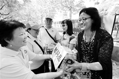 5日,朝阳区安贞街道总工会联合街道文明办慰问坚守在一线的公共文明引导员。活动中,街道总工会主席李咏梅代表工会组织向引导员表示问候,叮嘱他们高温下工作要注意防暑降温,做好保护措施,并为引导员送去了矿泉水等解暑降温物品。本报记者 刘欣欣 通讯员 史超齐 摄影报道