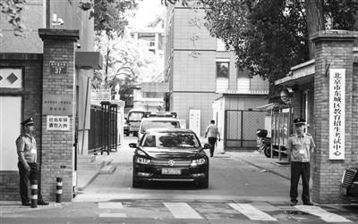 高考首日,北京警方采取了“高标准”的安保和服务措施,从高考命题到试卷押送、运输、保管等环节,警方采取全方位的防窃听、防窃取、防电子设备干扰等措施,确保试卷流转过程的“无缝衔接”。运抵各区考试中心保密室后,内保局安排专人24小时进驻看守,直至高考结束。图为东城分局民警从东城区教育招生考试中心出发押送试卷至各考点。本报记者 闫长禄 彭程 摄影报道