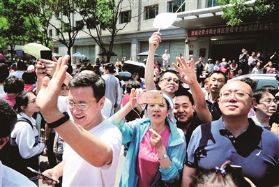 6月7、8两天,“00后”考生首次走入高考考场。与“80后”“90后”相比,“千禧宝宝”的应考情绪和家长的状态普遍比较放松,在孩子进出考场时,很多家长的第一反应都是举起手机,记录下他们的重要瞬间。