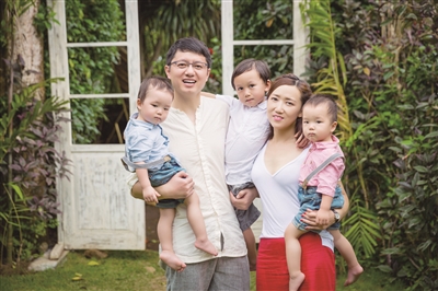 大儿子三岁时,国家落实全面放开二孩政策,于仁国的爱人再度怀孕,生下一对双胞胎儿子。三个小伙子在家里的情景,估计会让很多人崩溃。而于仁国夫妻俩带着儿子们踢球、游泳、画画,日子丰富有序。“有时候大儿子在学游泳课,两个小的就在泳池外的游艺室爬,经常引起围观。”
