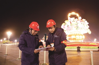 2015年,由于工作表现突出,宋晓龙被领导委以重任,成为 “华灯班”的副班长。为了向国庆献礼,每年,北京城市照明管理中心都会抽调骨干力量到“华灯班”,于5月至9月集中对长安街253基华灯进行清理维护。虽然自信业务能力过硬,但刚接手“华灯班”的时候,宋晓龙心里还是有些打鼓,毕竟这项工作容不得半点失误。那阵子,他的压力特别大:“之前华灯清扫工作一直运行得挺平稳,人家干那么多年都没事儿,不能在我这儿出问题啊。”他首先想到的就是向华灯班老班长孟庆水请教,从制定工作方案、工作计划到具体的操作步骤,每个小细节两人都聊到了。
