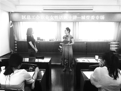 近日,怀柔区总工会职业女性话题十讲——城管委专场成功举办。当天,市民文明学校教师李娜从“声音技巧、演讲步骤、朗诵着装、舞台礼仪、表达技巧”五个方面,向喜爱朗诵的职工们传授了朗诵演讲技巧。