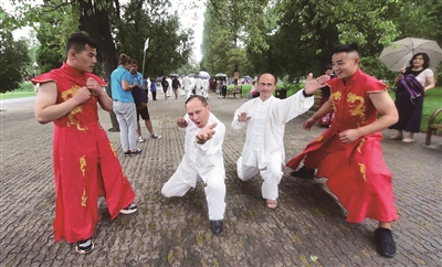昨天,记者在一家市属公园里看到,50多位洋客人跟一位功夫达人学习少林拳,他们表情认真,动作滑稽可爱,和谐的一幕引得路人纷纷驻足观看。据北京“欣欣翼翔”公司的向导介绍,这是一家国外公司组织的企业优秀员工旅游团,未来几天,他们还将游故宫、逛颐和园、爬长城,深度触摸中国文化。