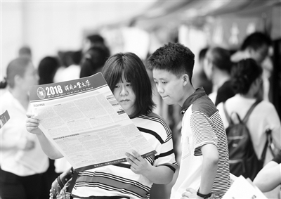 6月25日,在河北工业大学校园开放日暨高考招生咨询会上,考生和家长在了解高校招生信息。近日,全国各地举办2018年高校招生咨询活动,高校招生工作人员现场解答考生和家长关于高考志愿填报相关问题。新华社发