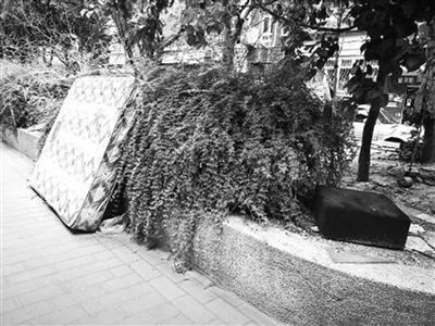 在西城区富国里小区内,不止一处绿地出现了废旧家具“点缀”其中的情况。记者在小区里走了一圈,发现至少有四五处楼前绿地内都有类似的情况,床垫、旧沙发、碎玻璃、废弃轮胎、破旧的木板……绿地俨然成了废家具“回收点”。(6月25日《北京晚报》)
