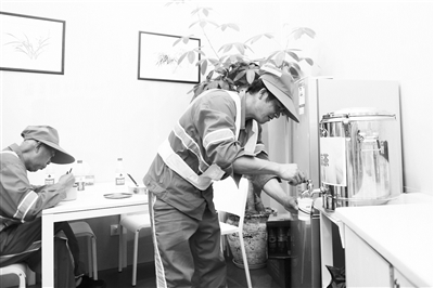 6月27日,杭州市气象台连续第二日发布高温橙色预警,杭州各环卫公司按规定安排环卫工人从中午1130到下午300轮休,环卫工人们可以就近到“城管驿站”等休息点避暑、歇脚。 据了解,目前杭州市共设爱心休息点3112个,环卫、市政等一线劳动者以及市民、游客都可以前去避暑纳凉。 图为环卫工人在杭州市江干区的一所“城管驿站”内休息。 新华社发