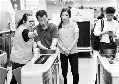 上图为深圳莲花北住宅小区30多名离退休人员为主体成立了义工服务站,这是义诊组的医生杨鸿龄(左二)在给区里老人诊病(资料照片);下图为2018年5月8日,在深圳地铁福田站,志愿者指导乘客使用微信扫码乘车。