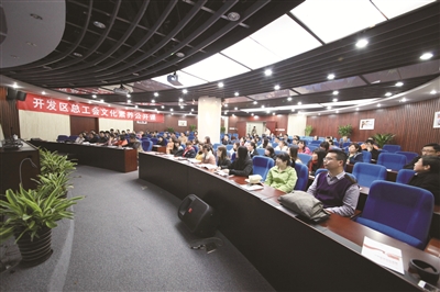 最近,北京经济技术开发区的第二期亦学堂刚刚开班。从2015年以来,开发区总工会为了全面提升职工综合素质,推出了职工夜校培训活动,并创建了培训品牌“亦学堂”。亦学堂培训的内容是根据区内企业发展和职工成长的需求设定的,包含传统文化、职业技能、兴趣爱好三大类课程。经过三年的经营,亦学堂已成为区内具有影响力的品牌培训项目,成为职工在业余时间“充电”的重要渠道,受到企业和职工的广泛好评。同年7月,区总工会又推出微课堂培训品牌,利用微信及直播平台为载体,采用多群转播的技术手段实现信息的广泛和高效传播,使参与课程的人群范围更广,学习方式更灵活,覆盖更多的企业和职工。