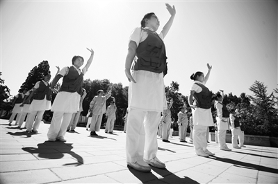 6月29日,和平里医院联合地坛社区、北京市疾病预防控制中心等,在地坛公园开展了“汇聚党建力量 助力健康东城”杏林先锋主题党日活动。当天,来自医院心内科、呼吸科、中医科、儿科等十余个专业的医疗志愿者为百姓提供义诊咨询和答疑解惑。图为杏林志愿者带领市民做八段锦。
