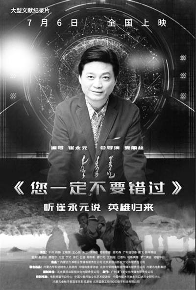《您一定不要错过》是一部由崔永元编导、麦丽丝导演的真实文献纪录片。片中集中展示了大量的珍贵中国电影史料镜头,影迷们不但可以从中看到50年代中国的全民偶像王心刚、王晓棠两位前辈演员的年轻时代,也能够看见蒙族演员恩和森、斯琴高娃、腾格尔、艾丽娅等当年风华正茂的银幕形象。
