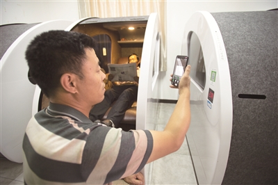 6月27日下午,北京气温达到37℃,《劳动午报》记者刚一走进货车司机之家,凉爽的空调瞬间隔绝了室外的热浪。陈平刚刚洗过澡,穿上洗后烘干的衣服,坐在看吧的软沙发上,一边看着电影,一边等着货车完成正常检修。“我从甘肃过来,路上很热,赶了两天路,实在太累了,本想停在服务区洗把脸清醒一下,没想到还有这么个好地方,感觉像家一样!”