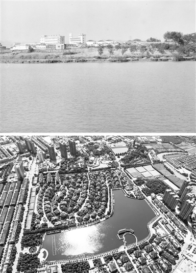 近年来,花园村实施大规模旧村改造,兴建了一批旅游景点和特色商业街道,以村为单位创建了国家AAAA级旅游景区。花园村先后被授予“全国模范村”“全国文明村”“中国十大名村”“中国十佳小康村”“中国旅游特色村”“中国幸福村”等诸多荣誉,是老百姓安居乐业的美丽乡村。2016年,花园村党委被中共中央授予“全国先进基层党组织”荣誉称号。2017年,花园村实现营业收入520.63亿元,村民人均年收入达12万元,被誉为浙江农村现代化的典范。图为无人机拍摄的花园村吉祥湖及其周边景色。