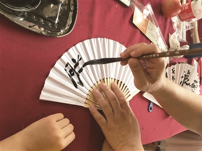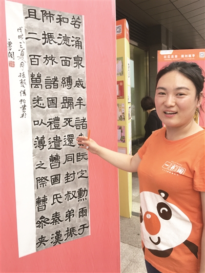 当天,展览现场虽然天气炎热,但看展览的人却络绎不绝,不少都是带孩子来的家长。“一书阁对展览组织的非常用心,不只是单纯的书画展览,还有体验区和游戏环节等娱乐项目也融为一体,让家长不仅能在展览中检阅孩子的所学所得,发现并挖掘孩子的潜能,也再造了一个‘亲子节’,更重要的是孩子们学会了感恩。”在游戏体验区一位家长感慨地说。