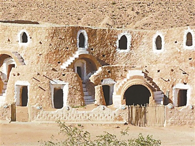 玛塔玛塔的村民是北非古老的民族——柏柏尔人,他们发明“悬屋”,最直接的原因便是抵御撒哈拉恶劣的气候。突尼斯南部的撒哈拉沙漠,属于热带沙漠性气候,白天高温酷暑,早晚温差极大。柏柏尔人为了生存,依沙漠中的丘陵地势向下挖一个大坑,再沿坑壁凿出一个个洞穴居住,这样的结构能够在白天阻隔高温,夜晚保持热量,一年四季都不会受恶劣气候影响。