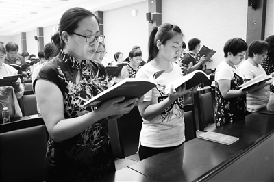 上周,通州区潞城镇开展“文明潞城,礼阅家庭”志愿家庭读书启动仪式。运河书院院长杨建英向妇女同胞提议:每天抽出30分钟阅读《文化自信与民族复兴》一书,提升自信、气质和涵养。据了解,该启动仪式以潞城镇妇联改革为契机,通过学习提高镇妇联工作业务能力,服务居民百姓、弘扬传统文化。本报记者 赵思远 通讯员 刘轶欧 摄影报道