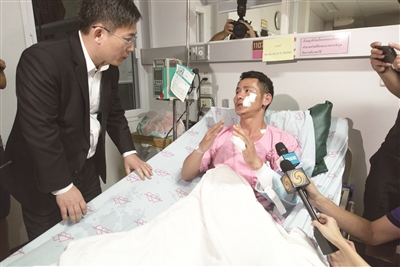 46岁的姚尚军是第二次来泰国普吉岛旅游,没想到竟与死亡擦身而过。躺在普吉府行政机构医院病床上,望着床头柜上被海水泡得发皱的护照和钱包,姚尚军对记者感慨道:“人平平安安地活着才是最重要的!”