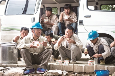 老兰在施工现场转了几圈就到了中午,开始吃午饭,他和所有的一线工人一样,拿起包子,席地而坐,狼吞虎咽地吃了起来。大伙儿都趁着吃完饭的空当休息一会儿,可是老兰又抄起他的蓝夹子去村里查活儿了。他说,“任务太紧张了,我得赶紧把这一趟路查完,晚上好回去编写施工计划,可别耽误了施工进度。”中午的太阳毒得人根本睁不开眼,但老兰已经练就了一双“火眼金睛”。“查活儿可不是拿个图纸随便瞎转转就算查完了,查活儿有许多门道,除了最基本的看电源关系、线路临近平行或交叉跨越的情况,更要看看电源开关的位置、高低压线路情况,考虑规划如何分次分段同时停高、低压线路把活儿干完,这么热的天气,村民都需要用电降温,所以尽量避免重复停电,给村民谋便利。”