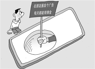 替别人在朋友圈发个广告,每天都能领“佣金”,还有这等好事?10日,厦门市反诈骗中心对外披露了一种利用微信朋友圈实施网络诈骗的新手法,提醒广大用户“天上不会掉馅饼”,切莫轻信“动动手指就能赚钱”的骗局。(7月10日新华社)□老笔