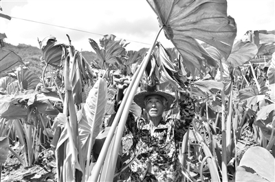 7月12日,福鼎市贯岭镇何坑村村民张良海在农田里修剪被台风刮坏的槟榔芋叶。台风“玛莉亚”给福建的农业、交通、水利、电力等方面造成不同程度的损失。台风过后受灾地迅速开展生产自救,尽快恢复生活生产秩序。新华社发