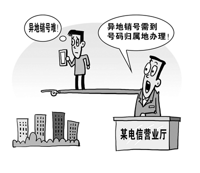 长期以来,手机号异地注销难一直是电信服务行业的一大“槽点”。用户异地注销手机号码时,往往需要回到千里之外的号码归属地进行办理。这一现象反映出行业发展落后于用户需求,亟待改进。(7月16日新华网)□朱慧卿