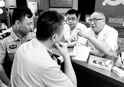 7月17日是入伏第一天,全国劳模、名老中医崔述生带领弟子数十人,来到东城交通支队为一线交警义诊,并为有需要的交警现场贴三伏贴。“一线交警常年在户外工作,风吹雨打,身体健康受到比较大的影响,咱们的劳模利用自己的特长,每年为一线的警务人员义诊。”东城区总工会副主席张军说。据了解,今年夏天,东城区总工会共为辖区一线民警送去3万元的清凉慰问物资。