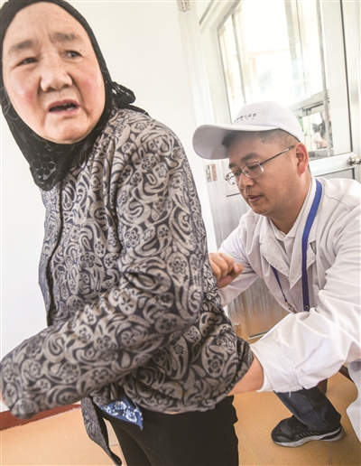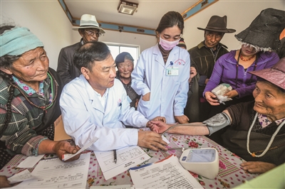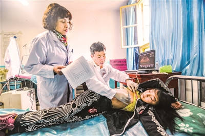 在甘家镇卫生院,不到8点,村民就自发在卫生院门口排起了长队。“北京的专家医生来,还免费义诊、发药,早上5点就来了!”一位村民表示,由于人多村民自发排队挂号,维持秩序。记者看到,为了更好地进行沟通诊治,每位专家都有一位藏语翻译员,协助专家询问了解病人病情,告知就诊群众药品的服用方法及用量等。专家们为患者量血压、进行B超检查,病情轻微的患者,现场开具处方免费赠药。而病情较严重的,则建议其及时到大医院检查治疗。