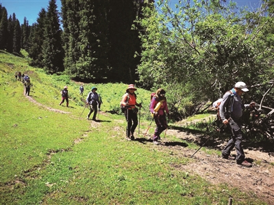张承志所说的夏台,我们伊犁大环线徒步的昭苏县夏塔丝路古道就处在这个地带,这里有河流、温泉、雪峰、古老的冰川……传说唐玄奘西行翻越的“凌山”,就是当年丝绸之路连贯南北最重要的通道——夏塔古道,现在古道上留下的基本全是石筑阶梯。