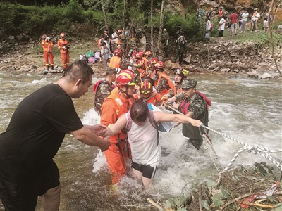 密云山区遭受连日暴雨侵袭,自7月16日局地特大暴雨以来,暴雨一直没有停歇,造成部分山村断水、断电,通信中断,道路损毁……其中,位于密云区石城镇深山区的黄峪口村几天内累计降雨量已达584毫米,进村的道路被完全损毁,且山体含水量接近饱和,随时有发生危险的可能。7月22日,记者从密云获悉,为保障村民生命安全,市政府决定将该村172名受困村民全部转出,转移到27公里之外的溪翁庄镇水库中学进行安置。救援转移分空中和地面两方面同时进行。截至记者发稿时,已经安全转移130余名群众。预计他们将在水库中学生活一周,届时再根据具体情况送他们回家。