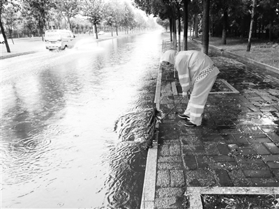 京城再次迎来强降雨。昨天,顺义区龙塘路京承铁路桥下及木燕路1.9至2公里处积水超过27厘米,已封路。北京市政路桥养护集团瑞通二处职工加紧排水作业。截至24日11时,养护集团共备勤2431人,备勤机械设备854台套,出动巡查人员125人次,出动巡查车辆58辆。