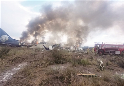 7月31日,在墨西哥杜兰戈州,救援人员在飞机坠落现场工作。据墨西哥媒体当天报道,一架墨西哥民航客机当天下午从该国北部杜兰戈州一机场起飞后坠落,造成机上数十人受伤。新华社发