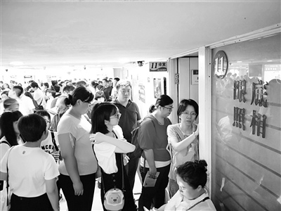 昨天,记者在同仁医院配镜中心看到,分诊台前、诊室外都被前来验光配镜的小患者和家长围得水泄不通。暑期,配镜中心每天的接诊量达2000人左右,比平时增加了15%。验光配镜中心的验光室全部开诊,将开门时间从早8点提前到早7点,并请分店验光师来增援,采取早、中、晚插空四班轮岗应对配镜高峰。本报记者 孙妍 摄影报道
