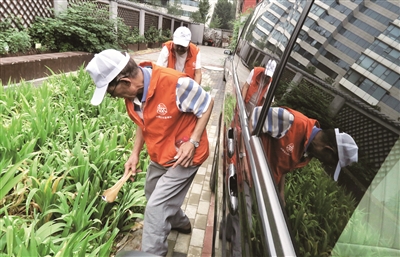 近日,东城区建国门街道西总布胡同里出现了一群不一样的身影,他们身着橘黄色马甲,一丝不苟地查看着胡同口袋花园中的花草是否干枯,地面是否有垃圾……这些“新面孔”便是西总布胡同自管会最新成立的环境卫生监督队的队员们。环境卫生监督队在西总布胡同定期巡查监督,为落实垃圾不落地、胡同无车化管理和绿地认领及维护等方面做出努力。(相关报道见第5版)