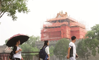 近日,北京故宫角楼文物修缮工程正式实施。角楼被围挡包裹,隐约可见工人正在进行施工养护。四座角楼建成于明永乐年间,此次修缮依旧采取修旧如旧的方式进行施工,待完工后,故宫角楼将更加庄重大气地迎接八方来客。