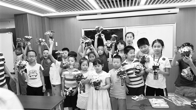 下午5点,临近下班的时间,新明家园甲一号文化活动中心,德胜街道总工会暑期托管班的教室里已聚集了不少前来开会的家长。他们不仅参观了托管班的环境,还观摩了当天下午的绘画游戏课。