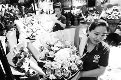 明天就是“七夕节”。昨天,记者来到玉泉营花乡花卉市场看到,鲜切花销售区的花商们正忙着修枝剪叶、打花束、发快递,让原本处于淡季的鲜花市场变得一派忙碌。据花店老板介绍,今年降雨量大加之七夕热销的原因,玫瑰花的价格从前三四天就开始涨价,但线上线下的销量一路看涨。