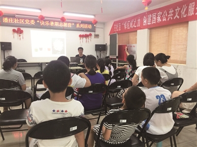 所以在今年暑期前,毕秀艳清楚地记得,在在职党员微信群里,把组织“快乐假期志愿营”的事情一公布,大家的积极性特别高,很快就报名安排了3期。在时间上和精力上,为了尊重授课者和听课者双方的意愿,社区把志愿营设定在每周六下午和周日全天,每次20名学生。
