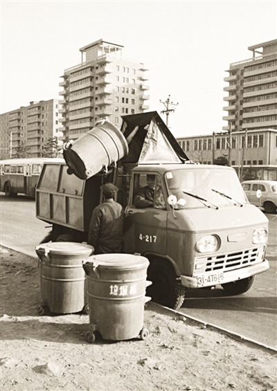 1953年,市卫生工程局研究决定取消垃圾集中站,改为“先摇铃后收垃圾”。在收运垃圾的汽车快到时,有专人负责摇铃通知居民搬出垃圾箱、筐,再由汽车运往垃圾消纳处。